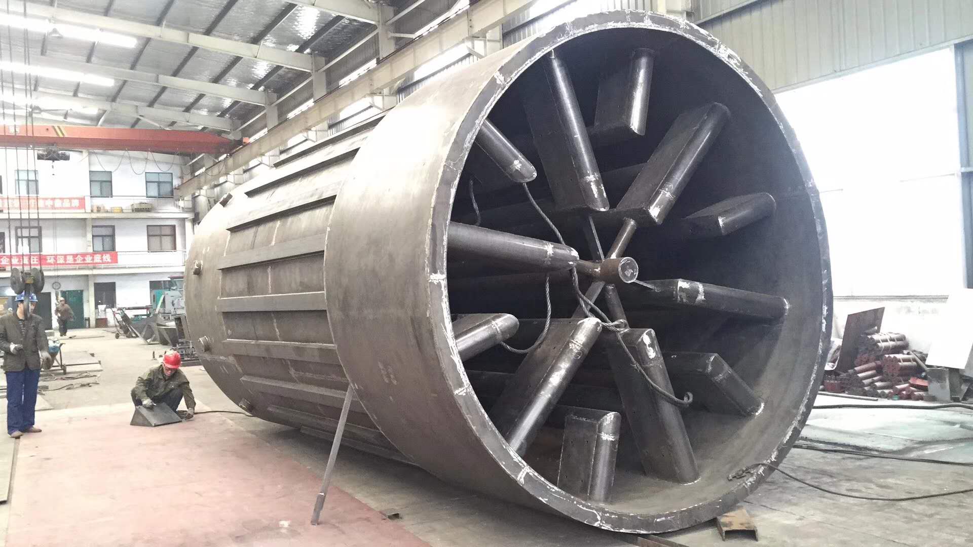熱風(fēng)爐是給烘干機提供熱源的裝置,是由耐火磚、紅磚、耐火水泥、爐條等壘砌而成。熱風(fēng)爐內(nèi)部由擋火墻分割而成燃燒室和降溫室,降溫室開有進冷風(fēng)口,可將燃燒產(chǎn)生的溫度混合室外的冷風(fēng)將溫度降至烘干機所需溫度。降溫室一般有1到2個,是由爐體的大小而決定的。熱風(fēng)爐的大小可根據(jù)烘干機的規(guī)格及烘干物料的種類進行配套。